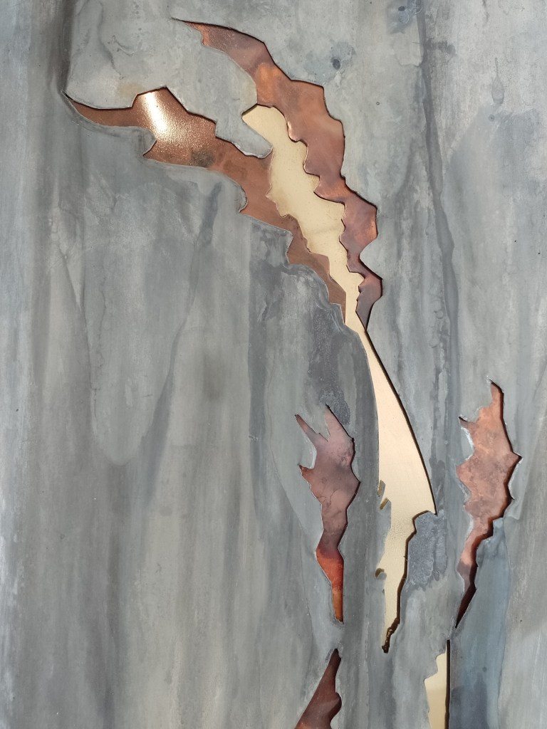 Création 2023 – Cuivre, zinc, laiton – 45cm x 100cm x 2cm